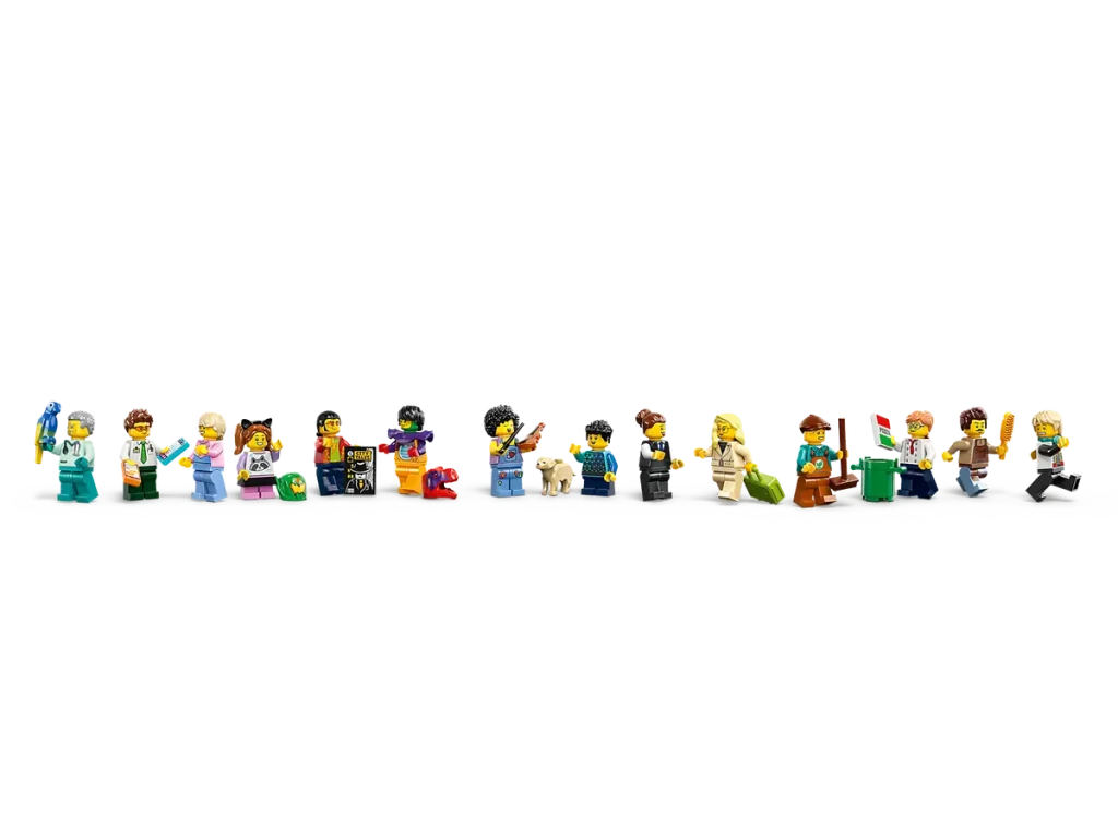 Legg til litt dybde og høyde til din LEGO City display med 60380 sentrum, som tilbyr to tre-etasjes bygninger forbundet med en gjennomsiktig gangbro for 14 minifigurer å krysse mellom de to. Med en frisørsalong, veterinærklinikk, bloggingstudio, diskotek på taket, tegneseriebutikk, teknologibutikk, vaktmesterrom, hotell, pizzeria, juicebar og nudelstand pakket inn i denne fargerike konstruksjonen, finnes det ikke noe bedre sett for å oppgradere din LEGO City sentrum med.