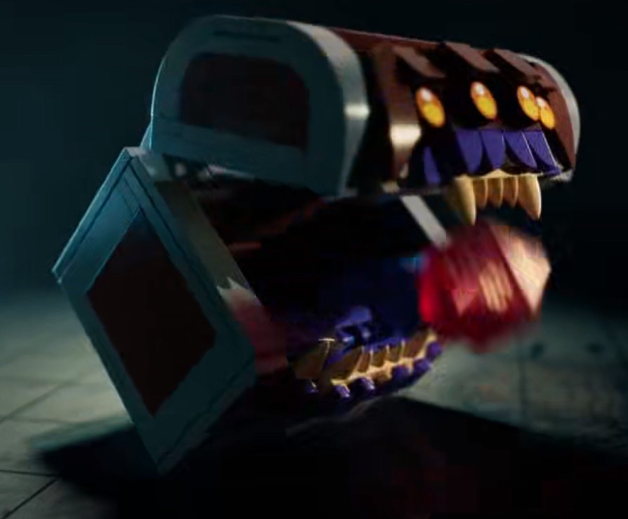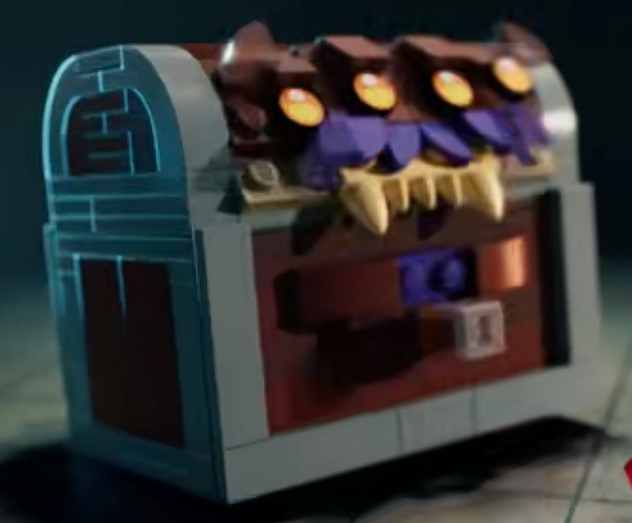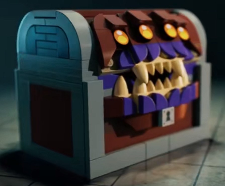 Den mursteinsbygde brystkassen forvandles når den blir truffet med en ikke-LEGO dø, og avslører seg som en firøyet Mimic. Disse monstrene er formskiftere og tar form av vanlige gjenstander for å lure eventyrere til å komme nærme nok for et angrep. Du husker kanskje å ha sett en kiste Mimic fra filmen Dungeons & Dragons i 2023.