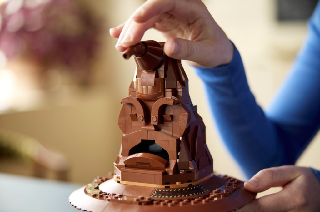 "Dette settet inneholder en eksklusiv Harry Potter-minifigur designet av Peter [Kjærgaard, grafisk designer], som har et nytt ansikt der øynene hans er lukket ("Ikke Slytherin! Ikke Slytherin!") samt Sorting Hat-elementet i rødbrun for den første gangen!" sier George.