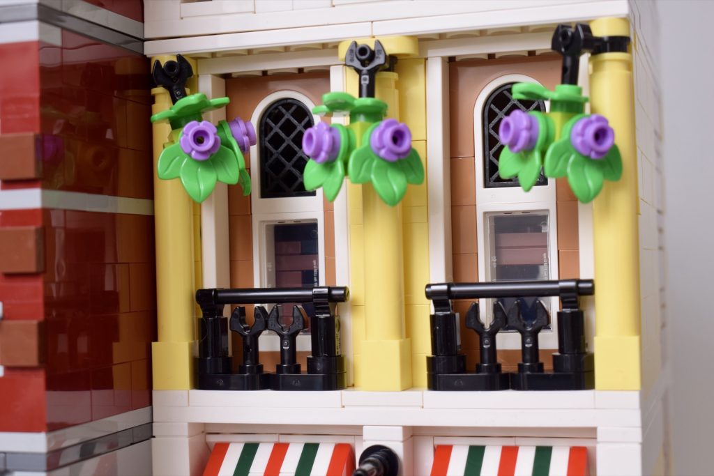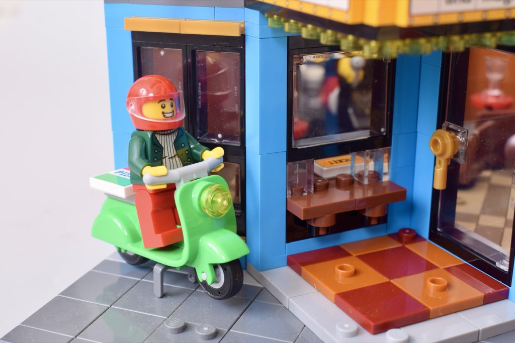 Når det er sagt, gjør den tilbaketrukne pizzeriaen og de forskjellige høydene på bygningene det enkelt å integrere 10312 Jazz Club i enhver gate. Mens en annen modulær gate ofte består av mørkere eller mer dempede fasader, vil denne virkelig tilføre et snev av noe nytt og lysere til en LEGO street.