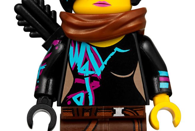 I tillegg til tre av kjernekarakterene - Emmet, Lucy og Batman – andre minifigurer i settet avslører hvordan enkelte Bricksburg-karakterer har endret seg siden ankomsten av DOBBELT inntrengere. Scribble Cop, 'Hvor er buksene mine?' Guy og Larry the Barista er alle tilbake fra den første filmen og ser verre ut for slitasje. Motorsag Dave, Mo-Hawk, Roxxi og Fuse er også inkludert. Harley Quinn og Green Lantern representerer DC Tegneserieunivers.