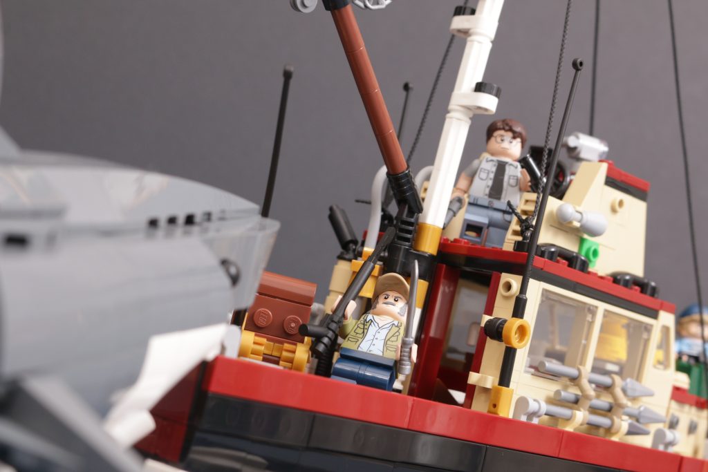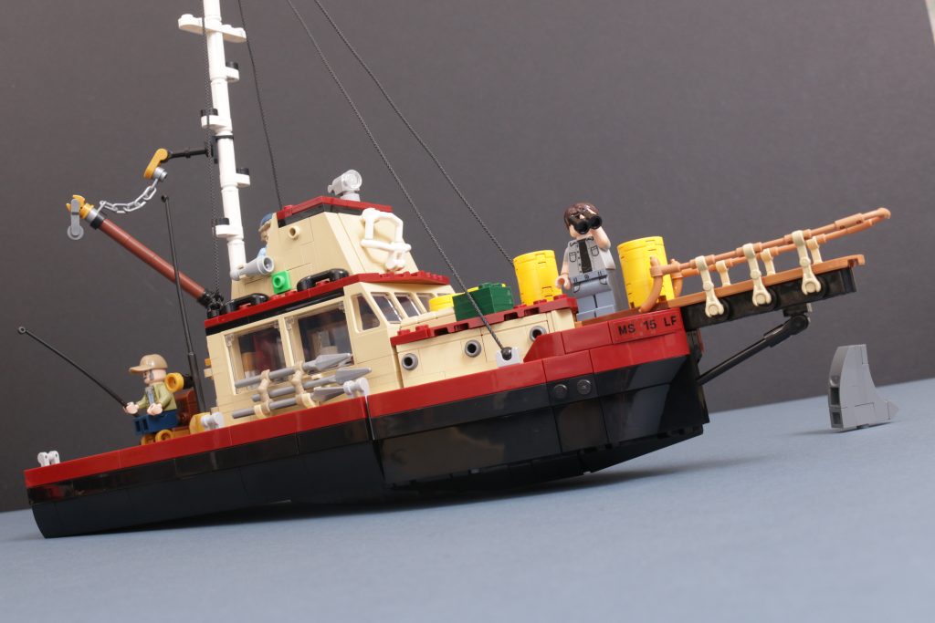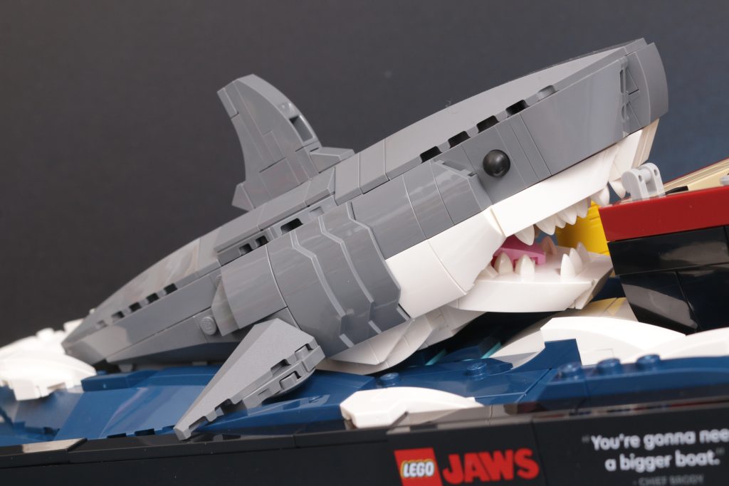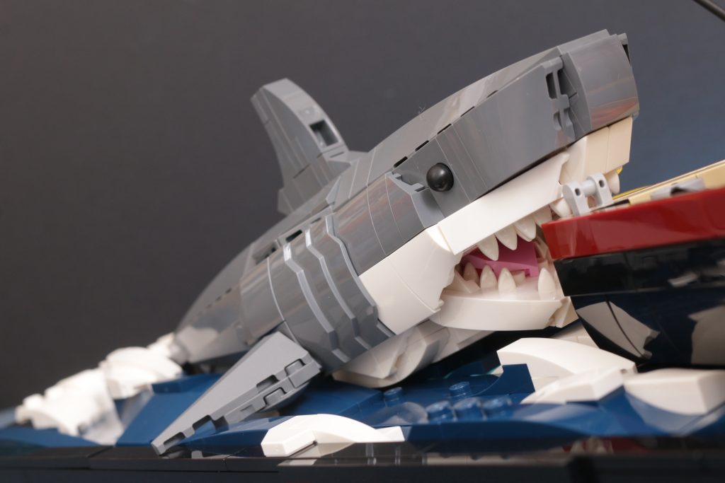 21350 Jaws ser flott ut når den er ferdig og inneholder alle de forskjellige nikkene og detaljene til den spente tredje akten av Jaws som alle som har sett den filmen vil like, ettersom først og fremst LEGO-settet leverer når det gjelder å se delen. Handlingen som er innebygd i den endelige modellen er slik at du ikke kan unngå å bli dratt tilbake inn i settet, da den tar Jonny Campbells to modeller designet i hans fansubmission og får dem til å samhandle med hverandre i vannet midtveis i det dramatiske sammenstøtet.