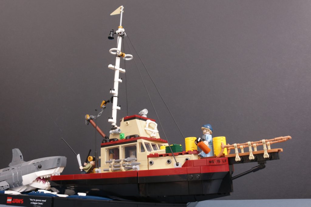 Se imidlertid nærmere, og du kan begynne å se hva som gjør dette siste, offisielle LEGO-settet så spesielt, ettersom det tar Jonnys utmerkede arbeid og foredler det enda lenger. Andre detaljer på tvers av både båten og haien begynner å vise hva LEGO Ideas teamet har bygget inn i settet fra det allerede veldig stabile utgangspunktet, og når du begynner å oppdage dem, vil alle disse små detaljene trekke deg inn for å finne en bedre forståelse av nøyaktig hvordan alt dette henger sammen.